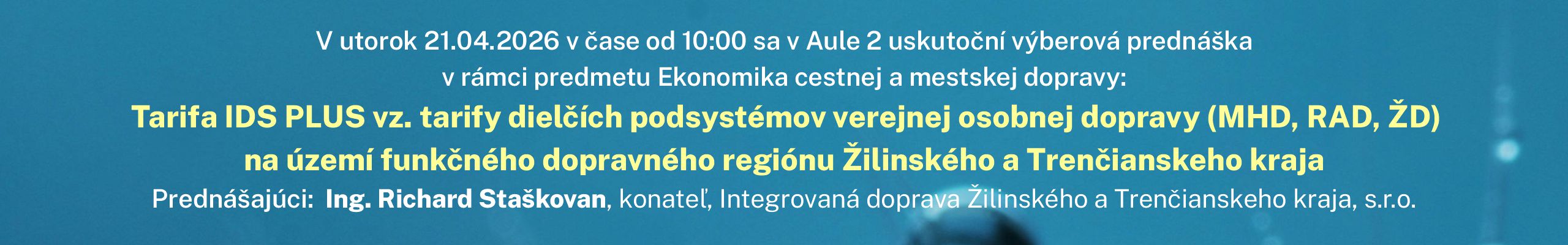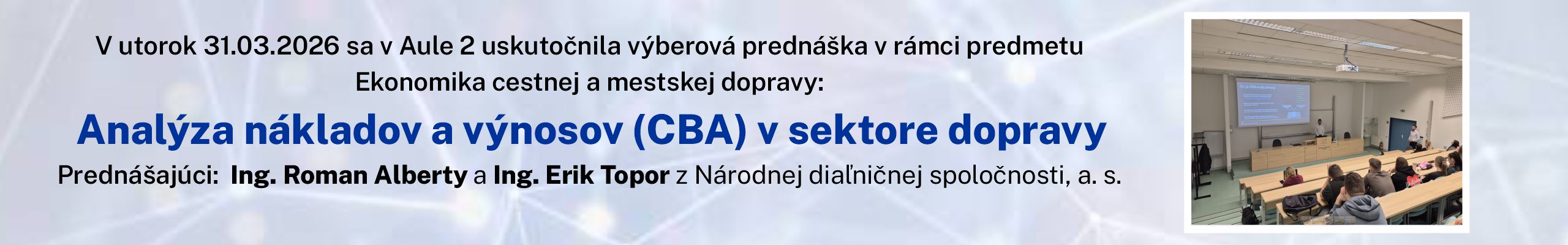 Pozvánka na výberovú prednášku na tému Analýza nákladov a výnosov (CBA) v sektore dopravy - 31.3.2026